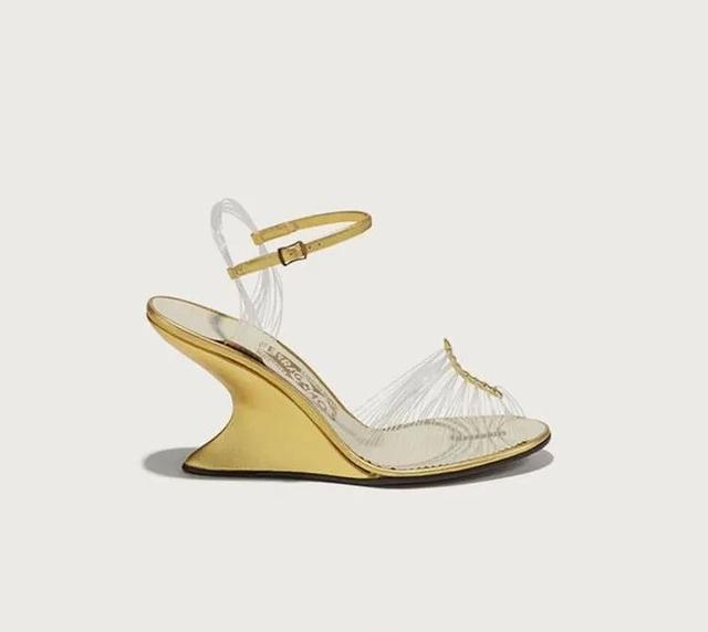 比如在物质匮乏的时期用随手可得的软木和结实的透明尼龙线,做出了F形鞋跟和透明凉鞋这款划时代的鞋子,现在看来仍然很超前。