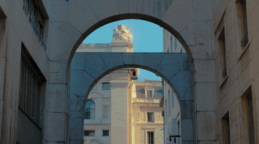 比如建筑方面,这处俯视的镜头明显致敬了希区柯克影片《西北偏北》中出现的联合国总部。