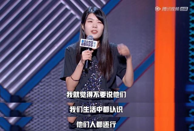 让她不断上热搜的痛怼直男的段子冒犯了所有男性的同时,更重要的剪接师让她的同事们充当了万千男性的代表,导致她不得不在比赛淘汰感言里再三说她的同事都是不错的人,大家不要去攻击他们,有事冲我来。