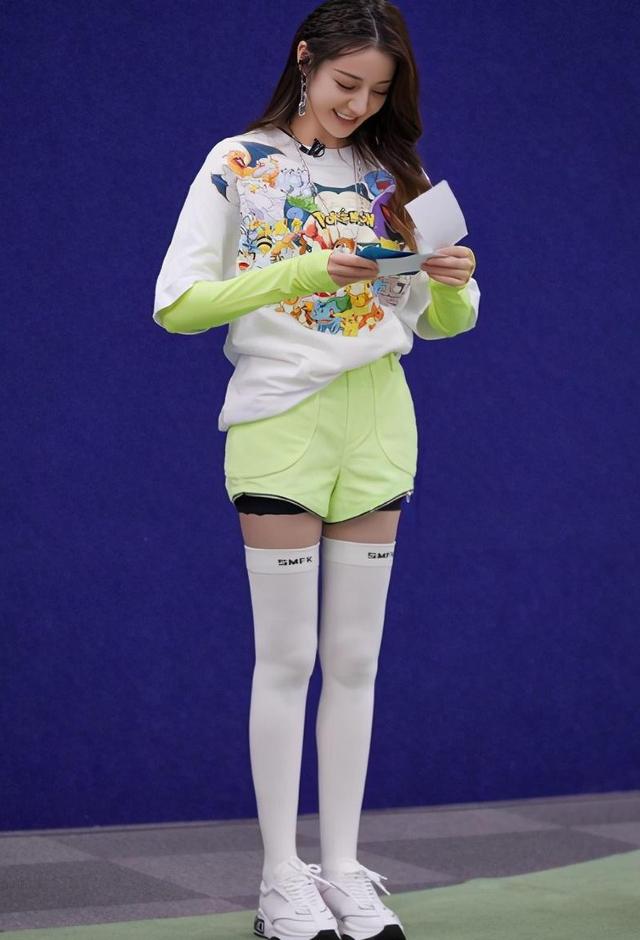 最让我羡慕的还是迪丽热巴完美的腿型,有一次热巴在出席活动的时候穿了一款白色拼接上衣,下半身则是荧光绿色的短裤,搭配超长白色丝袜,热巴完美的腿型都展现在大家面前,没有一丝丝赘肉,看起来很是健康,最主要的是她腿型非常直。