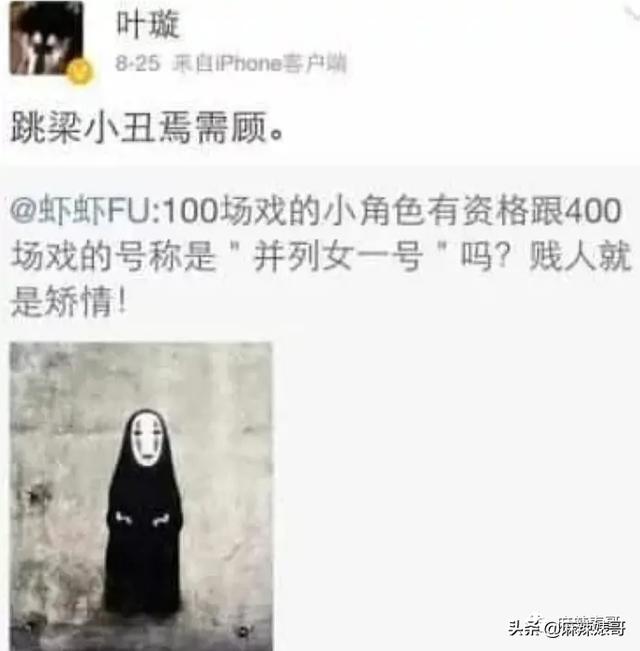 有一位叶璇的粉丝不满,就发文暗讽陶昕然,叶璇转发了,称陶昕然是“跳梁小丑”。