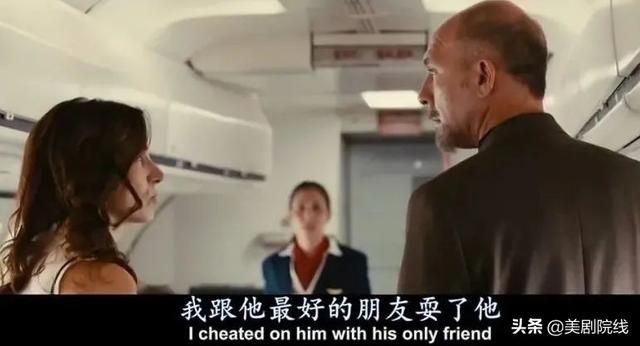 飞机上,一位秃顶男正忙着与棕发女调情。