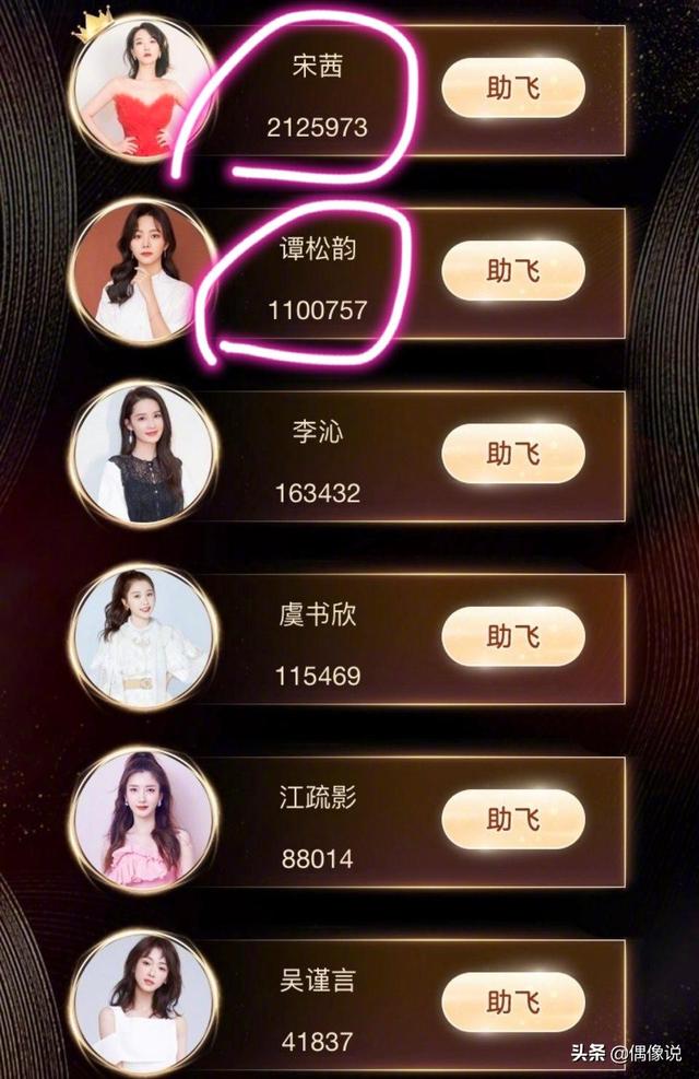 从目前的票选结果来看,金鹰女神应该会在谭松韵和宋茜中间诞生。宋茜目前断层领先100多万票,是第一名,谭松韵是第二名,两人现在票数相差很大,但还有一晚上的时间,粉丝还有“釜底抽薪”的魔力,不到最后关头,并不能确定最终获选者是谁。