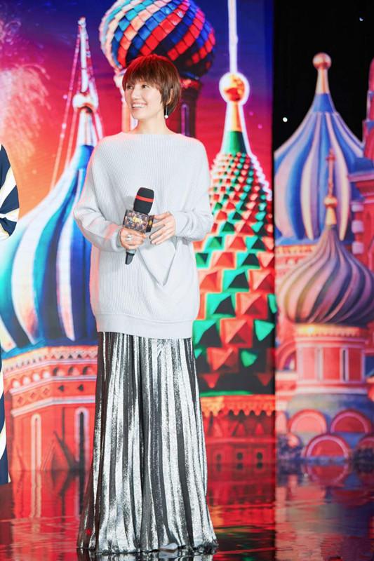 袁泉的好身材也很令人羡慕,个子够高不说还没有一丝的赘肉。肥大宽松的上衣能起到双向调节身材的作用,让袁泉的身材看起来匀称有型。百褶的半身裙采用了银色的面料,很有现代感时尚感满分。但这身造型还是有一定的驾驭难度,没有任何腰线的造型加上偏长的上衣,虽然很显身材高挑,但也稍显比例不是很完美。