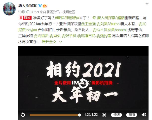 国庆档没能等来的《唐探3》在国庆档结束之后迫不及待官宣了定档2021年春节档的消息。