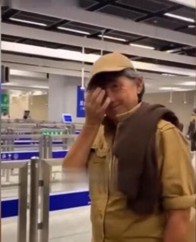 寿星林子祥穿着灰色上衣和休闲裤,虽然头发白了一大片,气色却显得很精神,看着很健康。