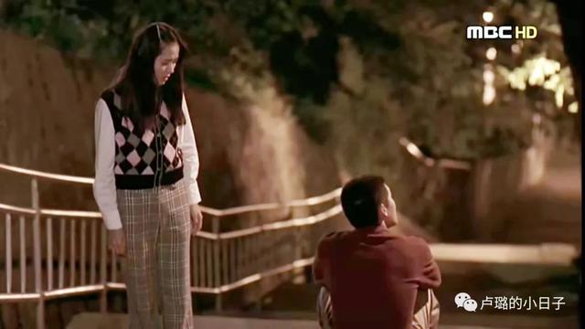 图中的珠喜和泰秀一起坐在河边的长椅上,温柔的卷发加上半扎马尾,在深秋枯黄的背景里意外地和谐。