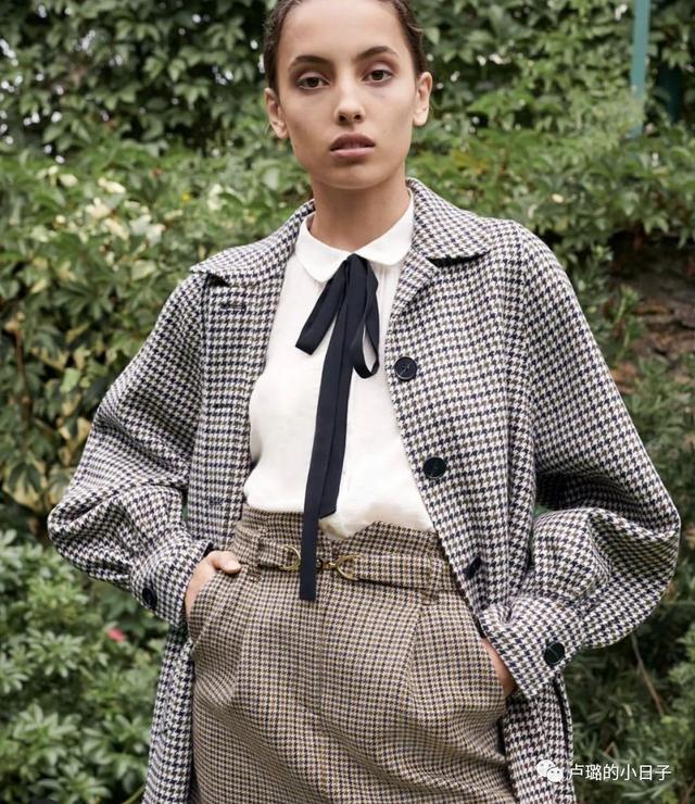 卡其色的格纹是最经典的格纹之一,一搜格子西装出来的必定是卡其色的,经典永不过时,今年maje的外套推出了不少千鸟纹的格纹图案。