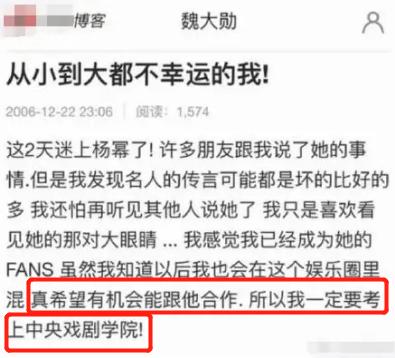 魏大勋早在2006年就在社交平台上公开表白杨幂,并表示喜欢杨幂的大眼睛,甚至为了有机会接触杨幂,还报考了中央戏剧学院。
