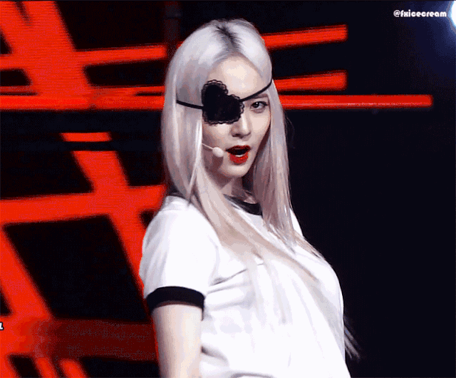 《Red Light》的白发+黑色蕾丝眼罩,把普通到不能再普通的白色T恤+短裤的造型救活了。