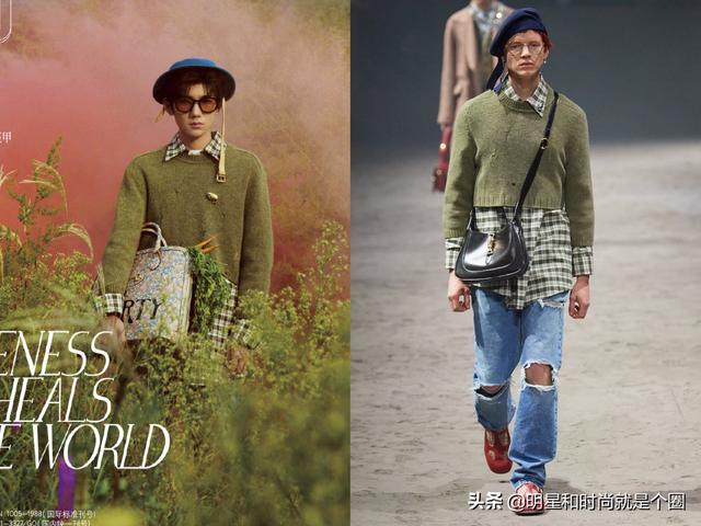 《时尚COSMO》2020年11月刊封面,王源身穿Gucci 2020秋冬系列格子衬衫、绿色毛衣。呃,这造型怎么感觉木木的?萌萌哒有没有?