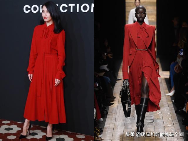 2021春夏上海时装周,高圆圆身穿Michael Kors 2020秋冬系列红色衬衫裙,你看这状态恢复得怎么样?感觉腰身还是有点粗,得继续努力,脸蛋也少了点紧绷感了,毕竟都过40了。