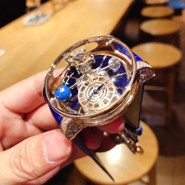 时间上的艺术品,想象力的空间是无限 ,捷克豹天体陀飞轮腕表Jacob&Co是个极为年轻的品牌,设计上非常的前卫大胆,独特的创意别具一格,注定不一样的外壳成就不一样的吸引力,虽然品牌年轻,但是前卫独特的外观设计可却得到不少明星,潮人,亿万少年的青睐,是很多亿万富豪们的必备玩偶。