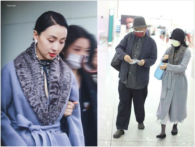 两次造型的不同之处在于,首饰上有区别。出现在金鹰节的陶虹戴着银色的耳坠,扎起头发,整个人如沐春风,即便都40多岁了,可还是一副小家碧玉样。耳坠的衬托显得皮肤白皙,更加时尚。而在机场的陶虹则朴素点,戴着口罩,脸庞并没有多余挂饰,简单而路人。