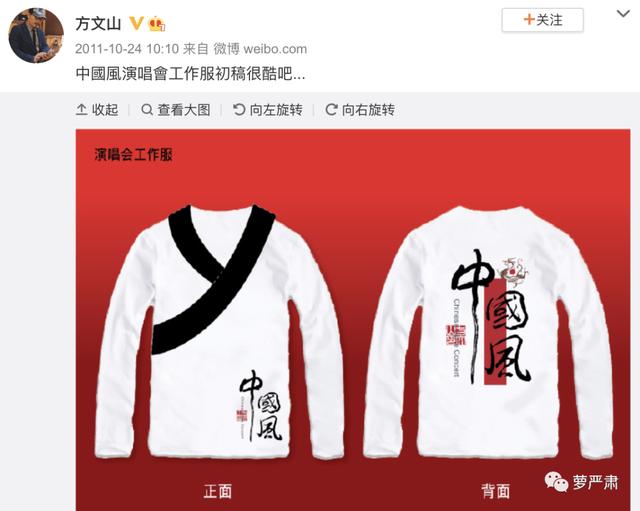 周杰伦和致力于跟喜欢极致中国的创作人合作,方文山当然是最常被提及的了,他是“中国风流行歌”里不可或缺的人物。方文山不仅对歌词里的中国风感兴趣,对服装里的中国风也很积极,他同时也是汉服推广者。