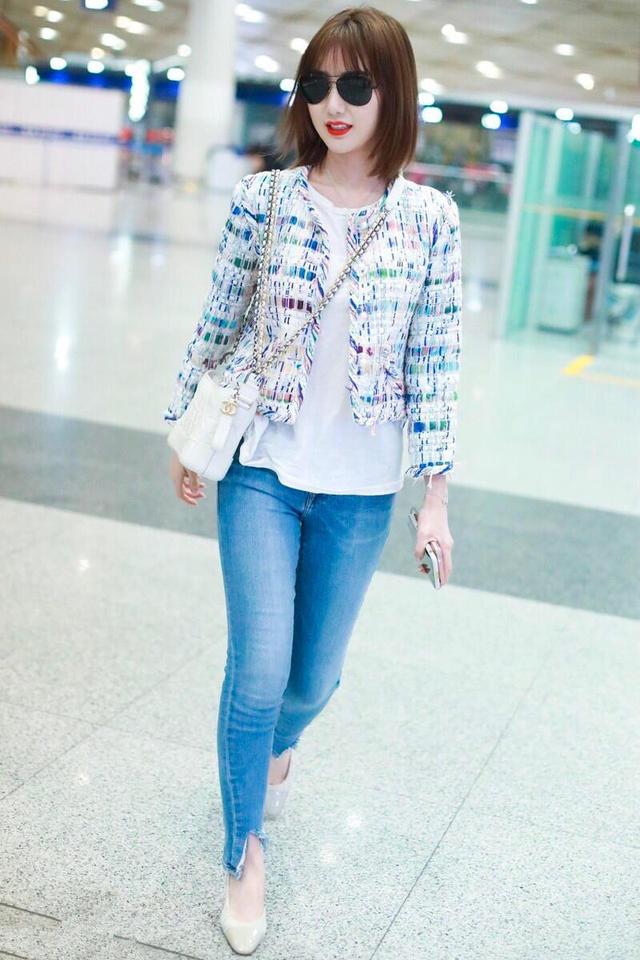 32岁毛晓彤机场造型“火”了!穿小香风搭配牛仔,秒变22岁少女,减龄又时髦,拥有高颜值的她就是不一样,不管什么样的衣服时尚单品都能很好的驾驭,简单的小香风外套内搭一件百搭白色T恤,搭配上紧身牛仔裤优雅大方,美出新高度。