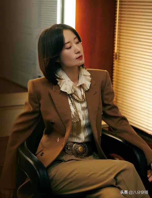 刘敏涛衣品不俗,西装搭配大地色长裤个性十足,知性优雅太迷人