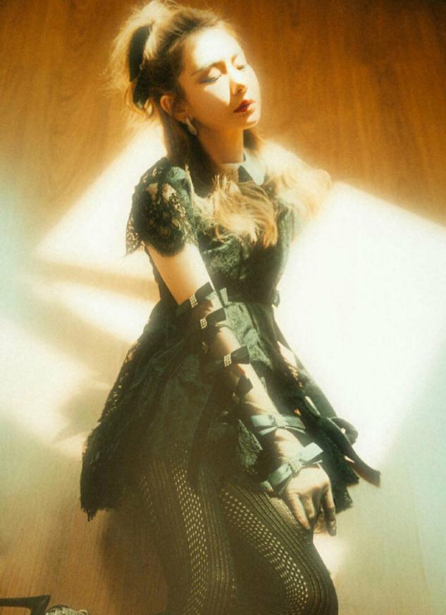 选择粉色服装时,一定不要用那些太单调的设计,如果没有戚薇那种很洋气的少女风采,一定要融入一些质感的元素或者采用重工设计风格。比如戚薇的这款服装就在领口袖口和衣襟部位采用了很多重叠的花边,让上身服装变得立体,这时配上简短的裙摆,保证了时尚感,也体现出设计感。