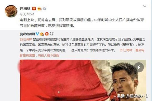汪海林可谓是网上爽言快语的代表人物之一,但凡是看不过眼的行为,总是会以发文的形式公开进行吐槽,此前他就曾怒斥过《陈情令》,也站边《攀登者》力挺吴京。