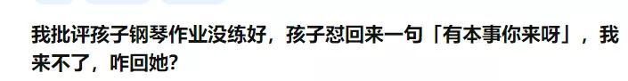 知乎上有个热帖,有人问她批评孩子钢琴作业没有练好,孩子怼回来一句:“有本事你来呀!”很明显这位妈妈来不了,问怎么回孩子?