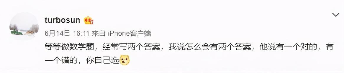 这熊孩子不按套路出牌,妥妥地要气晕亲爸的节奏呀!不过孙俪也好不到哪儿去,等等做数学题,经常写两个答案。