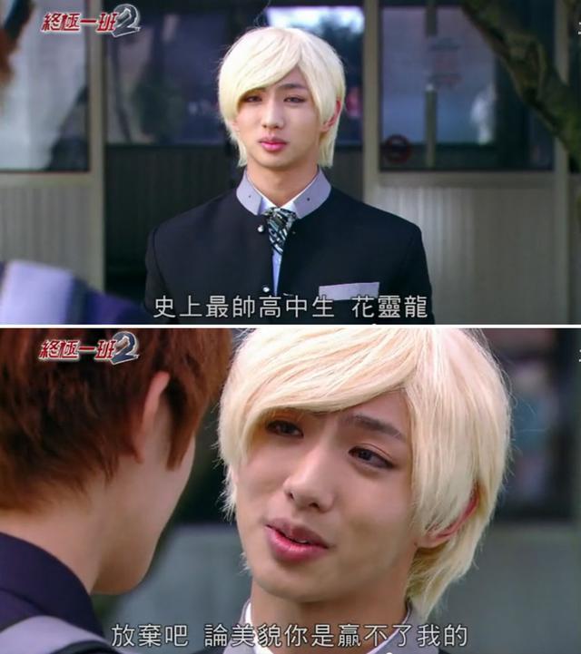 再来说一起事故,就是来自《终极一班》的对白,请大家围观史上最帅高中生——花灵龙。他的经典语录是:"论美貌,你连我一根指头都比不上。"