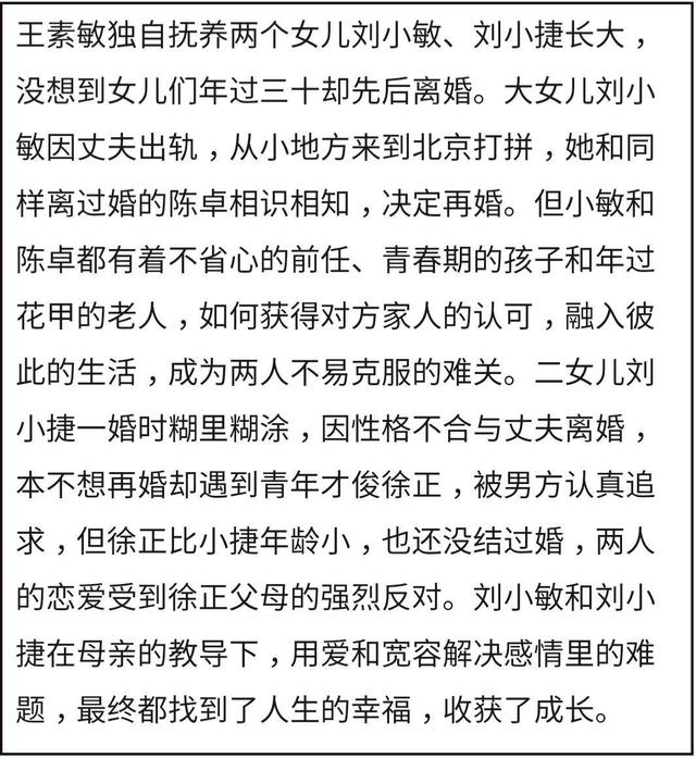 而从网络上流传的《小敏家》的故事简介来看,这部剧主要是围绕着男女主角成立再组家庭之后展开讲述的,该剧在描写中年人的婚姻围城的同时,也会以孩子作为切入点辐射到教育话题。