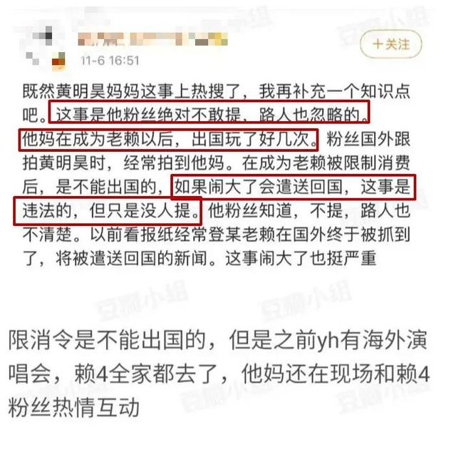 2019年9月18号,有网友爆料黄明昊妈妈上了失信名单。