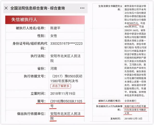而陈建平本人早在2016年就被列入过限制高消费人员名单。