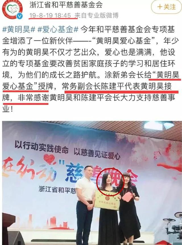 为啥是慈善基金?因为黄明昊他妈是这个基金的副会长。