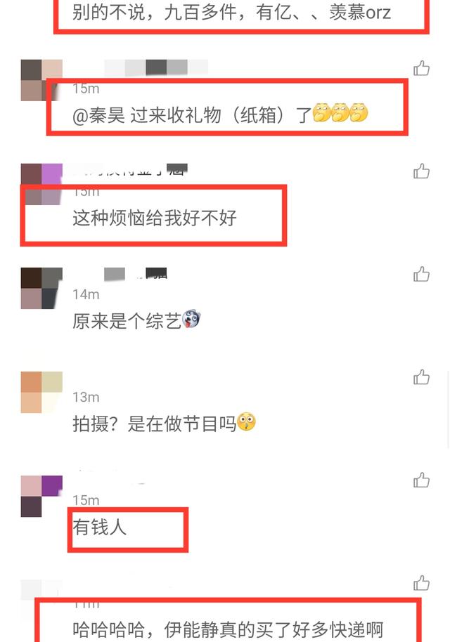 对此,网友们也是纷纷表示羡慕:"别的不说,九百多件,羡慕!"还有网友调侃伊能静:"这种烦恼让给我好不好?"快递多到用三轮车搬运,或许这就是有钱人的"烦恼"吧。也有粉丝在评论区召唤伊能静老公秦昊:"过来收礼物(纸箱)了!"