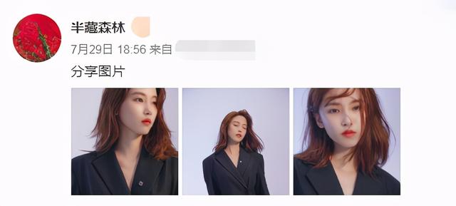 直到今年7月,半藏森林首次现身发动态,一身黑色职业装尽显干练。
