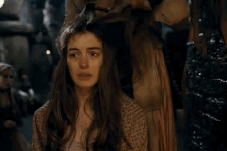 接下来的剧情电影《悲惨世界》中,海瑟薇饰演了在生活的无情折磨中挣扎的工厂女工芳汀。这部电影对安妮·海瑟薇的要求十分严苛,除了要完成高难度的演唱之外,还因情节需要而剃短了寸头,凄凉又苍老。