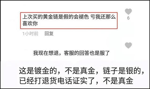 有网友在评论区中表示,此前陈志朋曾在直播间中称商品是真金,但自己收到货之后商品却出现了褪色的现象。