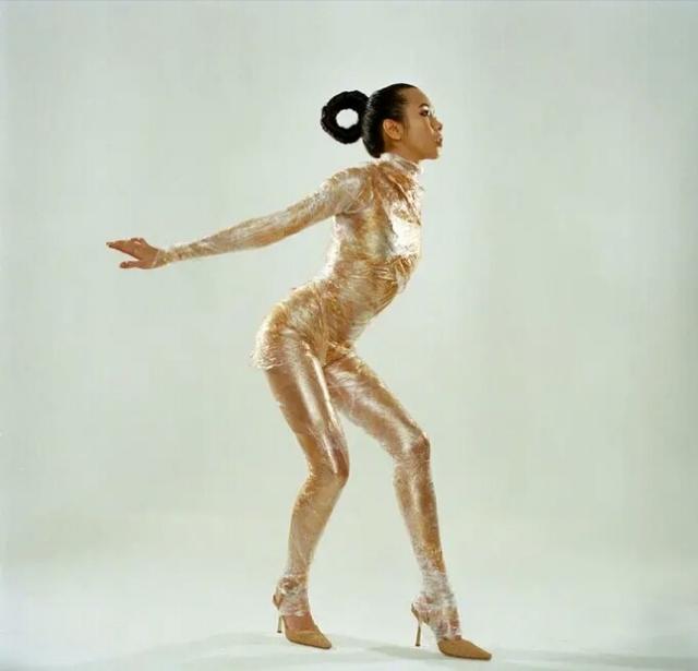 还有一张莫文蔚全身的照片,照片中她的身体都被金色保鲜膜紧紧裹住,配了一双金色高跟鞋,凹出S型身材,既性感又时尚。堪称完美比例的身材,就像一个精心雕琢的艺术品。不得不说,早在二十年前莫文蔚就这么前卫了。