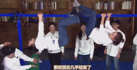 玩单杠游戏时,柳真已经吊上去很久,金素妍都无法上去。好不容易在李光洙等人的帮助下上去了,却不到一分钟就失败了;