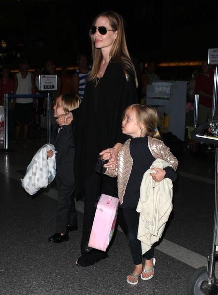2013年9月4日,朱莉与龙凤胎儿女现身洛杉矶国际机场,朱莉同样一身黑色造型气质干练优雅。又长一岁的薇薇安打扮得更美了,梳着低马尾搭配金色外套、黑色打底脚踩人字拖,妥妥的小明星范。诺克斯也越长越帅气了。
