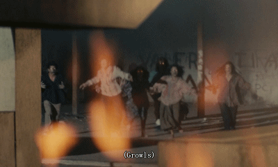 前去洗手间的妹子,发生了变异,另一个妹子见她很久没有回来,就去找她,结果被抓伤了脖子逃跑。慌乱中,她跑到了大荧幕的背后,她的尖叫,与电影中的剧情此起彼伏,最后冲破幕布,倒在了看台上。倒下的妹子,当着众人的面,长出了獠牙和尖利的指甲,吓得众人哇哇大叫,此时,第一个变异的妹子也开始了她的杀戮,先把偷情的狗男女勒死了。