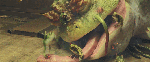 那舌头在王子进身上一卷,把他甩进水池,又被拖上来摔在地上。