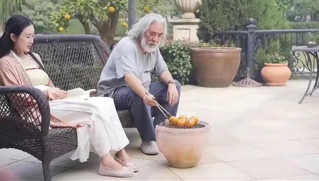 坐在一旁的张纪中只做家居打扮,手持一双筷子满脸认真的盯着身前火炉上的烤橘子,还时不时夹起一颗橘子举到杜星霖跟前和爱妻低声交流,似乎是在讨论这橘子的火候有没有到位,两人一举一动之间都散发着清净闲致的生活气息。