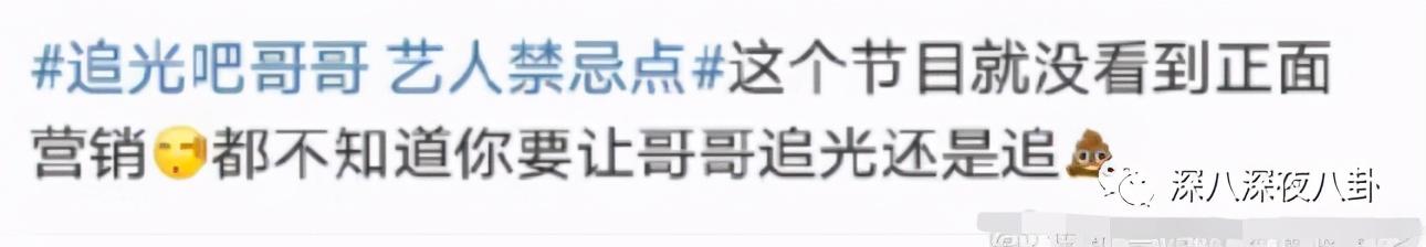 “披荆斩棘”项目迟迟没有动静,本来觉得哥哥这茬算是被忽悠过去了。结果裤悄咪咪上了叫《追光吧哥哥》的节目。