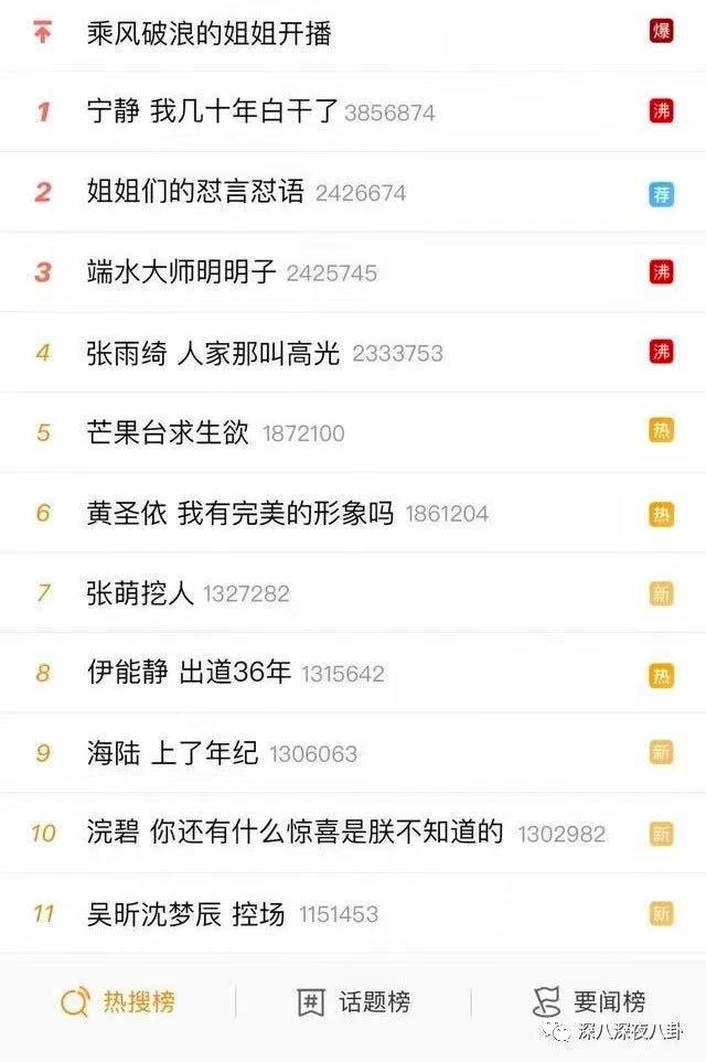 播出那会儿,但凡遇到新一期播出,就会出现霸屏。榜单从上往下拉一遛,就全是姐姐。