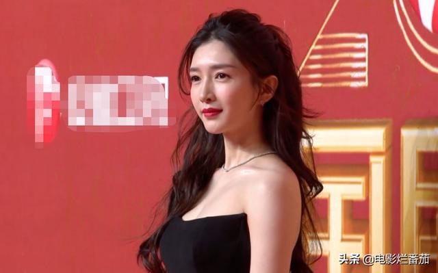 江疏影当晚选择的是一条黑色抹胸包臀裙。