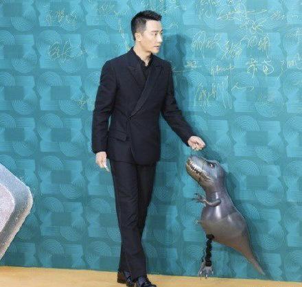 黄轩牵小恐龙走红毯抢眼,反差萌养眼,藏青西装配寸头文艺十足
