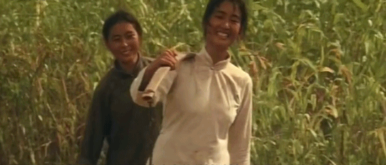 拍摄《红高粱》时,她每天在高粱地里练习挑水。