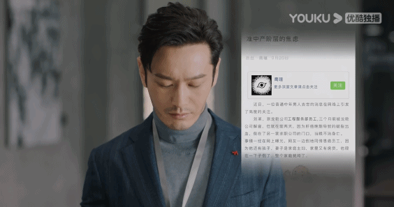 剧中体现舆论的公众号文章《准中产阶层的焦虑》,也曾在现实中引起过轰动。
